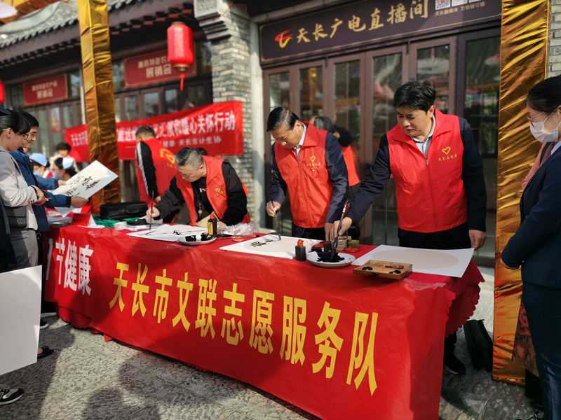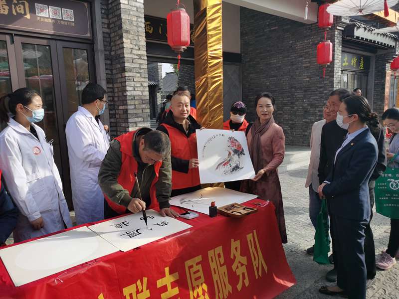 志愿者们还在文艺演出现场,为广大群众创作书画作品100多幅,深受市民们的喜爱,为节日增添了喜庆气氛。
