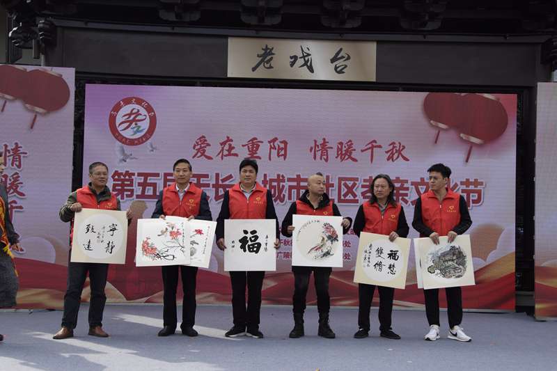 爱在重阳,情暖千秋。中华文化源远流长,孝老敬老爱老,是传承中华优秀文化的传统美德,文艺志愿者们怀着对孝亲家庭的敬意和爱戴,他们深情地创作了“福寿长乐”、“爱老敬老”、“百善孝为先”等书画作品,向受表彰的孝亲家庭祝福。