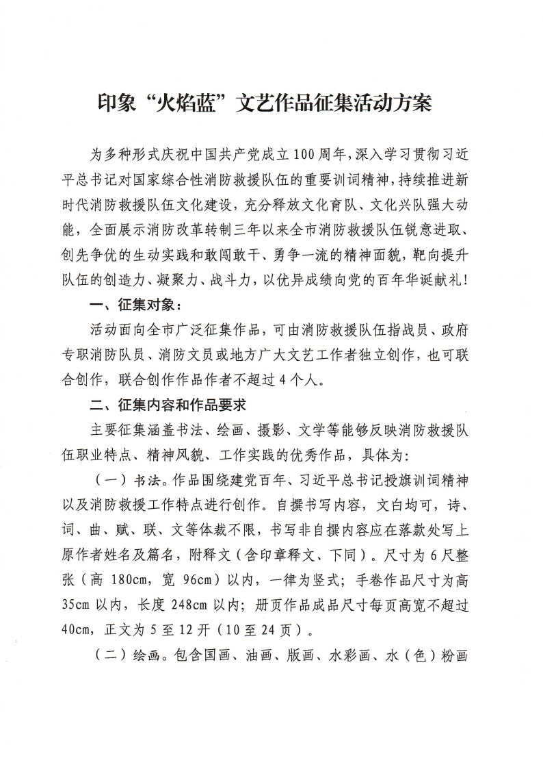 关于开展印象“火焰蓝”文艺作品征集活动的通知