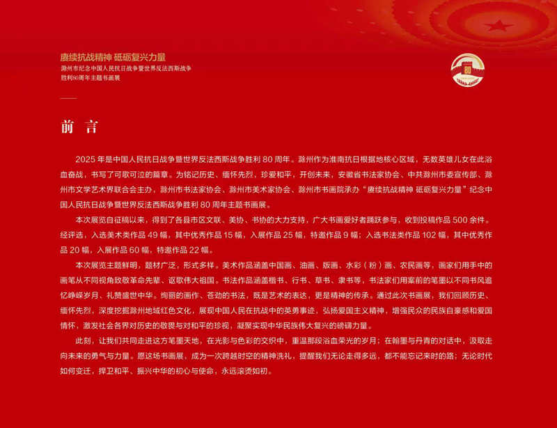 展讯|“赓续抗战精神 砥砺复兴力量”滁州市纪念中国人民抗日战争暨世界反法西斯战争胜利80周年主题书画展