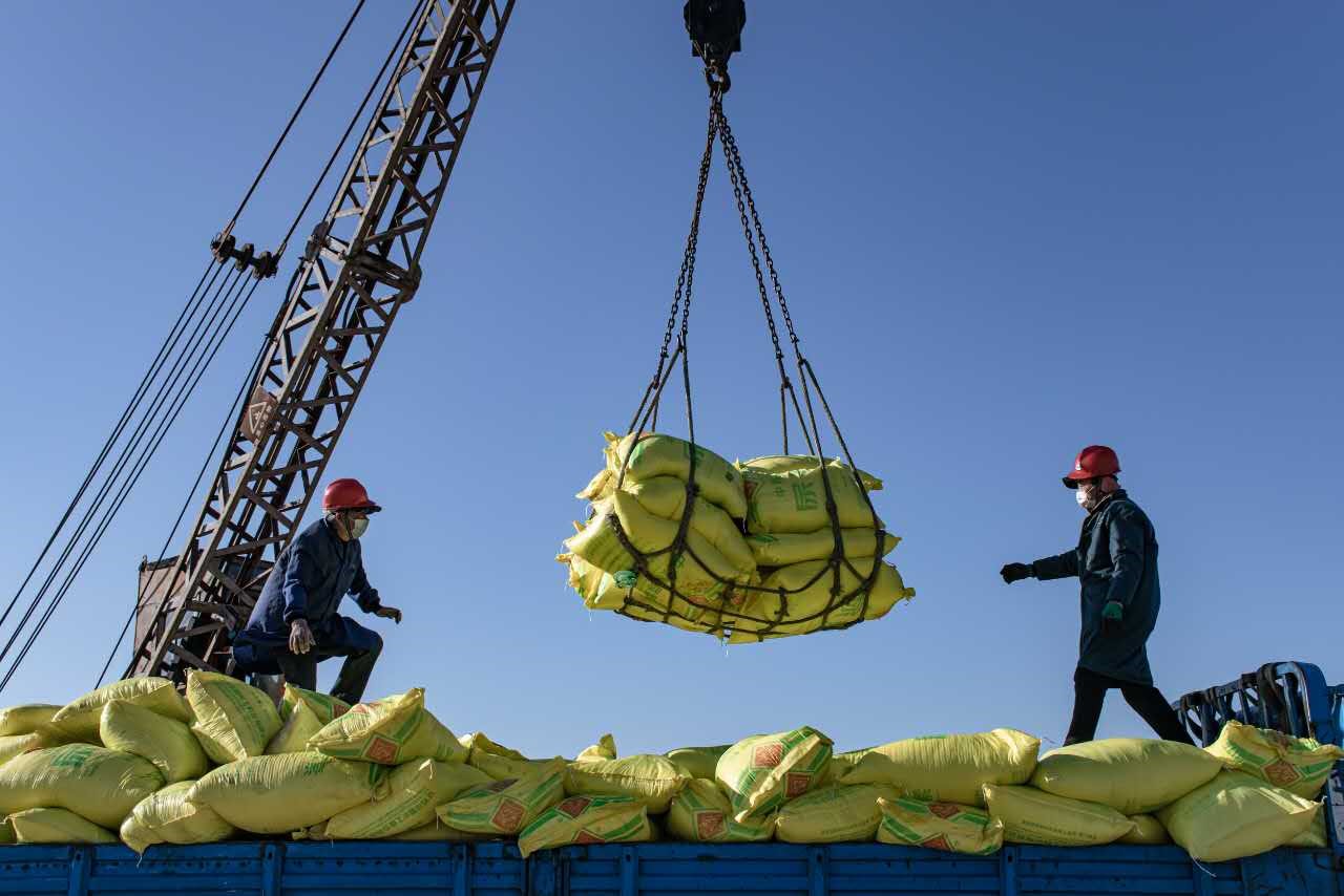 春耕追肥配送忙 陈家斌 摄