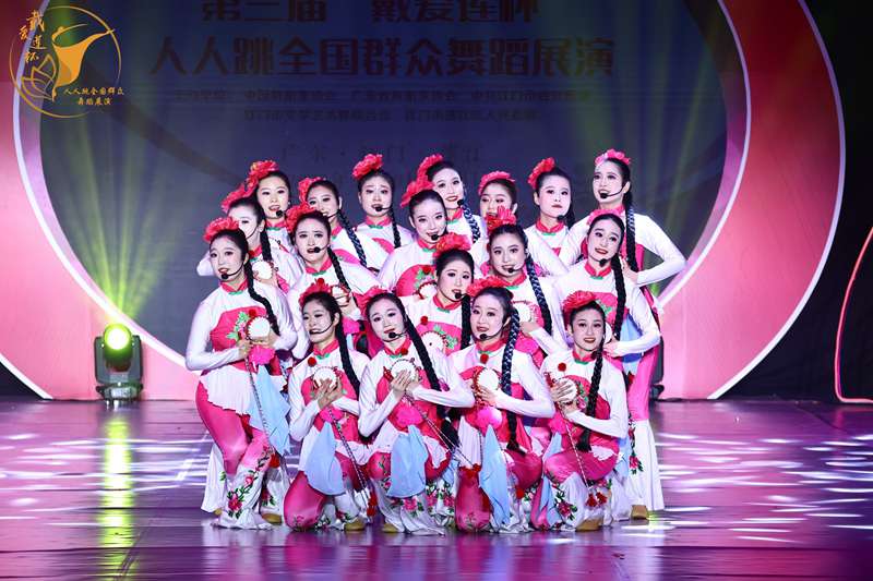 据了解,戴爱莲杯全国群众舞蹈展演,由中国舞蹈家协会、广东省舞蹈家协会联合主办。是中国舞蹈家协会目前批准设立的唯一的全国性广场舞比赛项目,每两年举办一届,永久落户在戴爱莲先生的故乡、“中国舞蹈之城”——江门。此次展演5月19日-21日在广东省江门市蓬江区盛大开幕,本次全国舞蹈展演活动自启动报名以来,共收到来自全国21个省(自治区、直辖市)55个城市的124个节目报名参加选拔,仅报名的舞者人数便达到了2600多人。经中国舞蹈家协会专家委员会推选,最终确定25支队伍参加现场展演,共设两个奖项,分别是“风采之星”和“魅力之星”。《幸福花鼓敲起来》作为安徽省舞蹈家协会选送的唯一作品,赴广东江门市参加了此次展演。
