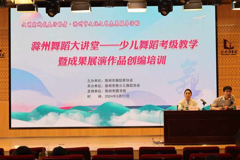 5月11日下午,由滁州市舞蹈家协会主办,滁州市青少儿舞蹈协会承办的滁州舞蹈大讲堂——少儿舞蹈考级教学暨成果展演作品创编培训在滁州市图书馆报告厅举办,我市50余位舞蹈培训机构教师积极参加活动。