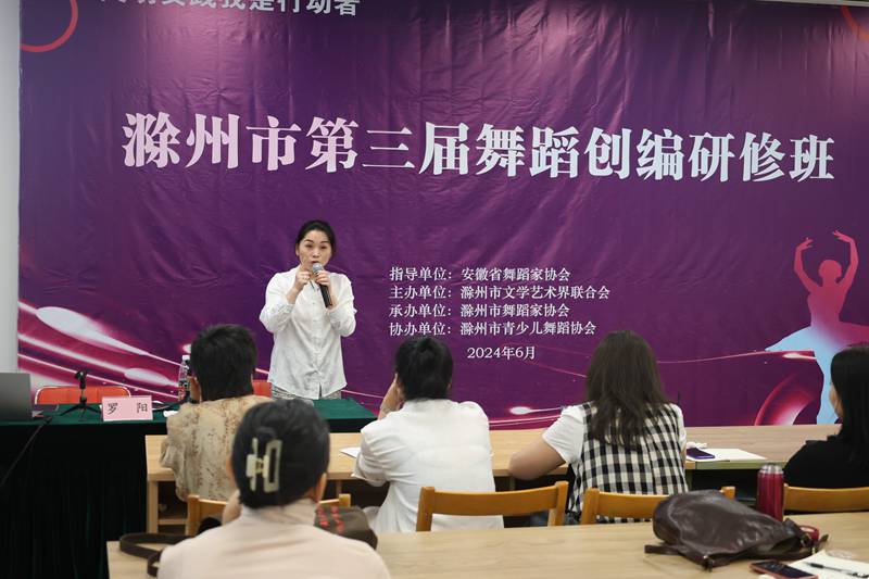 6月27日至28日,为深入学习贯彻习近平文化思想,扎实推进繁荣兴盛的文化强市建设,切实加强滁州市舞蹈工作者的编创水平,组织打磨滁州优秀舞蹈原创作品参加安徽省舞蹈新创作品展演和“小荷风采”少儿舞蹈展演等舞蹈专业比赛展演活动,由省舞蹈家协会指导,市文学艺术界联合会主办,市舞蹈家协会承办,市青少儿舞蹈协会协办的第三届舞蹈创编研修班在滁州市文学艺术中心圆满举办,来自全市约70余名舞蹈工作者参加了研修班学习。