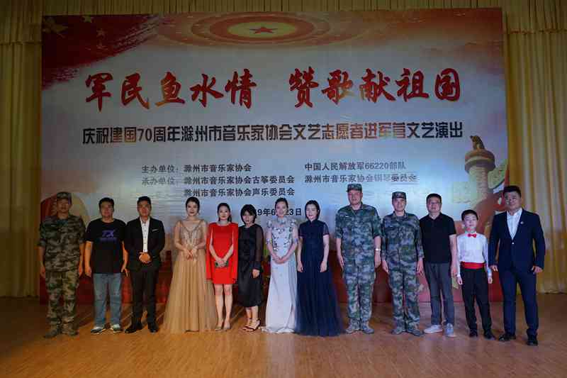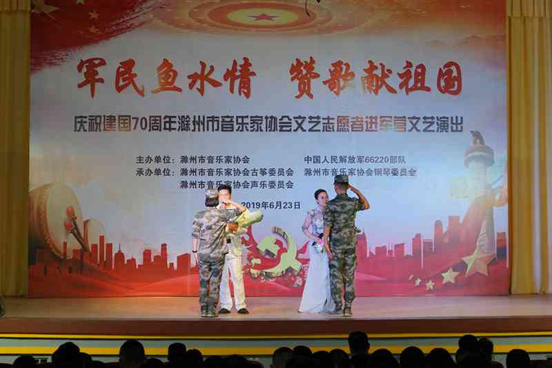 6月23日,由市文联音协、解放军66220部队主办,市音协古筝委员会、钢琴委员会、声乐委员会承办的“军民鱼水情 赞歌献祖国”——庆祝中华人民共和国成立70周年滁州文艺志愿者进军营文艺慰问演出在部队大礼堂隆重上演,在共同庆祝祖国母亲的生日的同时,为驻滁部队官兵送上精彩的文艺演出,表达滁州人民对子弟兵的一片深情。