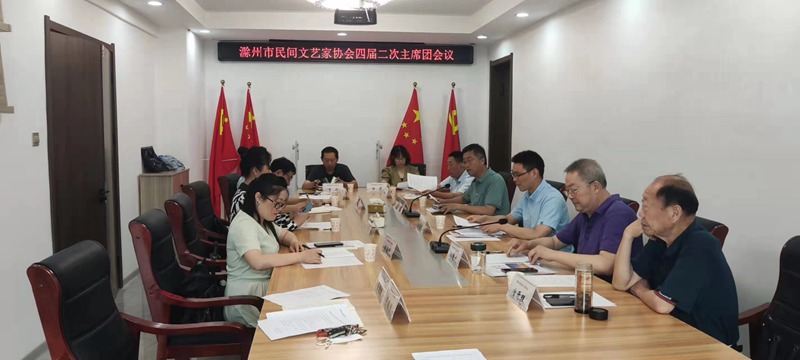 6月19日上午,滁州市民间文艺家协会四届第二次主席团会议在全椒县召开。受滁州市文联三级调研员贾鸿彬委托,市文联宣教部副部长陶昌斌出席会议并讲话,市民协主席韩国龙,副主席乔国荣、杨文敏、李学兵、陈海珍、宣扬、宫开理、钟成玉、贲明广、杨菲等主席团成员参加,会议由滁州市民间文艺家协会副主席兼秘书长贲明广主持。