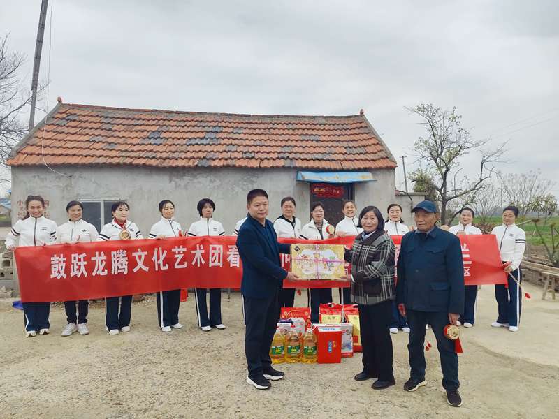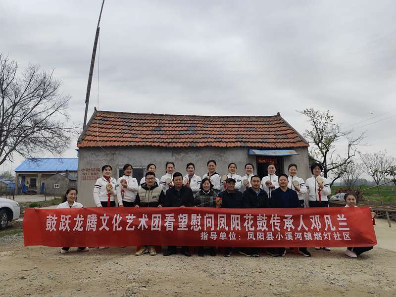 花鼓声中舞袅娜,红纱飘动似春花。4月6日,凤阳县新时代文明实践鼓跃龙腾文化艺术团志愿服务队花鼓队成员20余人自筹资金,购买慰问品,前往小溪河镇燃灯社区,看望慰问凤阳花鼓传承人邓凡兰。小溪河镇副镇长蔡传东和燃灯社区两委成员参加了活动。