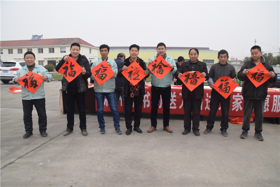 1月18日,滁州市文联、天长市文联、治山镇人民政府开展走进企业送春联惠民活动,10多名书法家挥亳泼墨,用真情书写心声,一幅幅"福、寿"字,一幅幅“盛世百花齐放,幸福万紫千红。门迎百福,户纳千祥"的大红春联,印红了喜获春联广大职工的笑脸,传递着新春的祝贺。书法家们现场书写赠送春联500多幅,广大职工手拿春联,喜悦地说,和谐新时代,幸福感党恩。