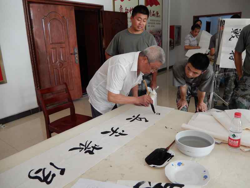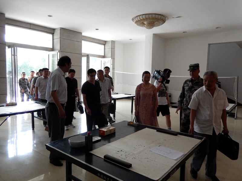 上午9点30分,艺术家们一行来到军营驻地,受到部队官兵的热烈欢迎。为了给艺术家们营造良好的创作环境,部队官兵提前安排好场地、桌案和笔墨纸砚,让现场艺术家们深感欣慰。