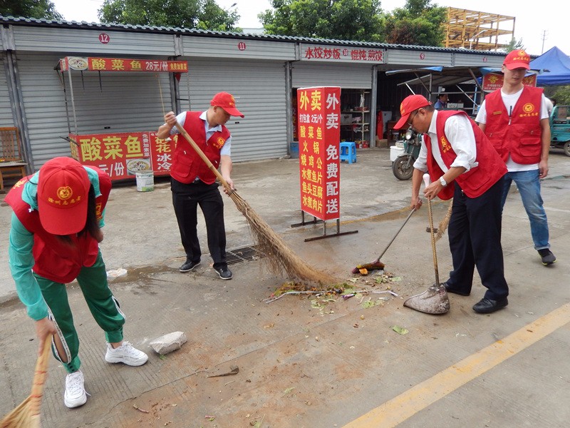 入户走访前,志愿者们手拿扫把、簸箕、垃圾袋等工具,对社区沿街路面进行清扫,对道路两旁的草丛、景观树等卫生死角进行垃圾清理。同时,在清扫过程中,志愿者们向过路行人宣传“文明见于细节,创建从我做起”的文明理念。在志愿者们共同努力下,该路段环境卫生得到了清理和改善。