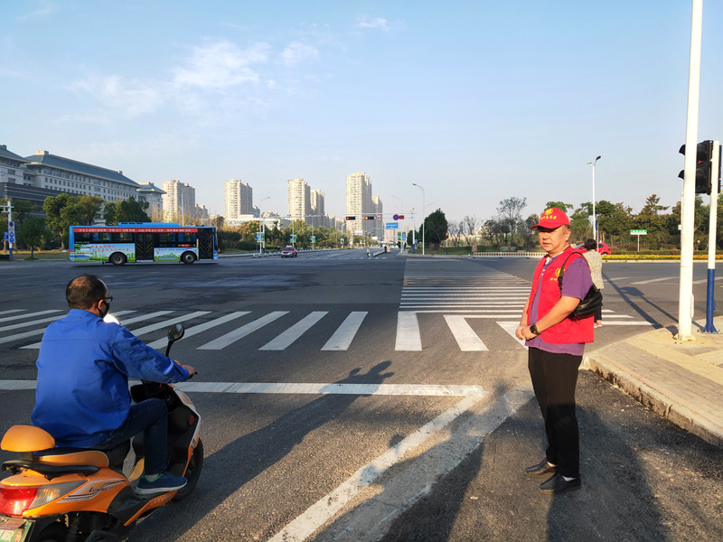 10月4日一早,志愿者头戴小红帽、身着志愿服,准时准点在包保路段指定路口协助维护交通秩序,做好文明交通指挥。活动中,志愿者对行人和非机动车的超越停止线、不按导向行驶等不文明交通行为进行耐心的劝导,用文明言行宣传“文明出行我先行,文明创建大家创”的理念,以实际行动参与创城活动,向伟大祖国献礼!