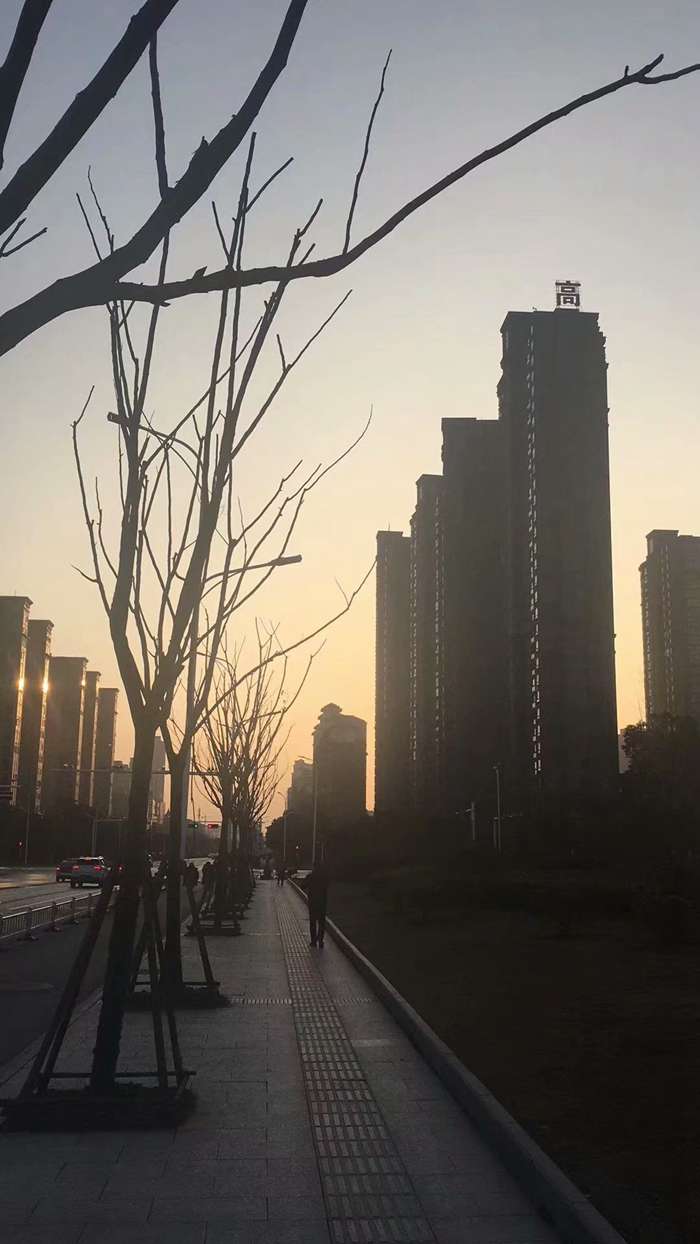 那天,下午五点二十之前,我和我同执一班岗的小伙伴又赶到了属于我们的路口。夕阳的余晖映照着远近高低不同的楼宇和花树,也照着行人和马路。眼前的所有仿佛镀了金一般,清晰而明亮。高远的天空在久久长长的连阴雨之后,很懂人心似的呈现出无比洁净的碧蓝色,上面飘浮着稀稀薄薄的云,宛如被看不见的纤纤之手轻轻地拉成丝,又被染出了浓淡深浅不一的色彩,像是新娘长裙上绢帛织成的薄纱。