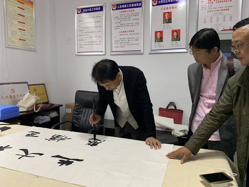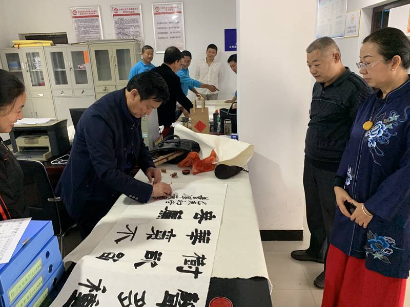 会后,戴武、范振海、吴祝宁、徐坤、周志广、董泽武、杨德泉、胡业清等书画家现场挥毫泼墨,书写了“中国梦”“脱贫致富”等一幅幅催人奋进的书法作品,描绘了大自然多姿多彩的美丽画卷,用积极向上的书画作品鼓励贫困群众脱贫致富共奔小康,为“红色大桥、生态水湾”营造浓厚文化氛围,以实际行动践行文艺为人民服务的宗旨。本次活动受到基层一线扶贫干部和群众的热烈欢迎,为决战决胜全面建成小康社会聚精神、鼓士气。