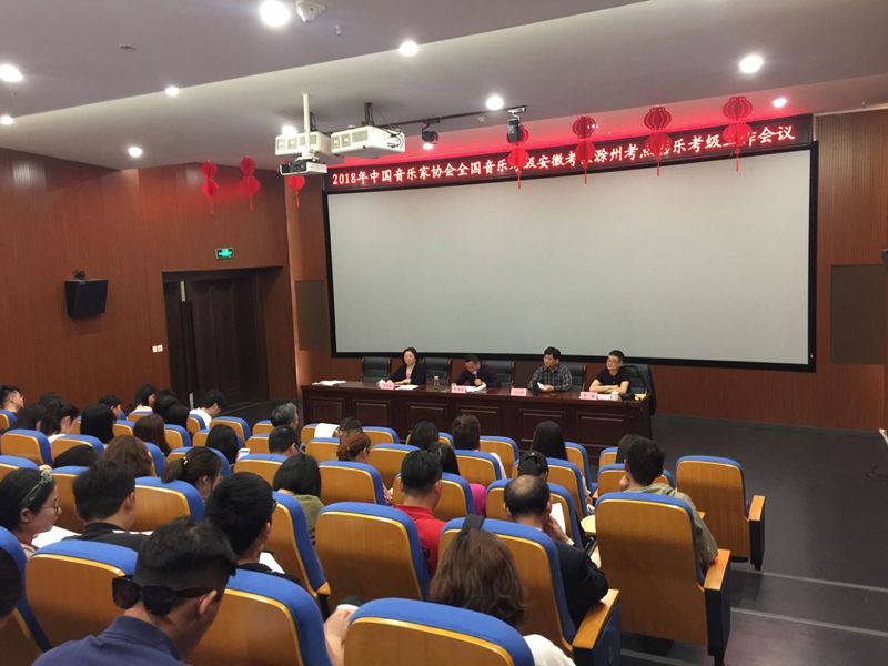 5月24日上午,2018年全国音乐考级安徽考区滁州考点器乐考级工作会议在滁州美术馆二楼召开,来自全市近90位专业老师、音协考级相关同志参加了会议。市文联党组成员、副主席贾鸿彬,市音协主席方志新,市音协副主席、滁州学院音乐学院党总支书记李道琳出席会议。会议由市音协秘书长罗键主持。