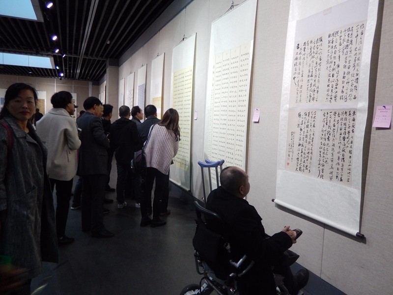 此次展览作品,楷之端秀、行之飘逸、草之空灵、篆隶之典雅,形式多样、佳作尽备,不乏雄浑大气之风,亦呈清丽婉然之美,彰显艺术情怀,讴歌时代发展,为改革开放四十周年献上了一份深情厚礼。展览将持续到11月12日。