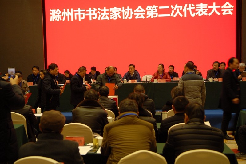 12月20日至21日,滁州市书法家协会第二次代表大会在滁州召开。滁州市委常委、宣传部长李树到会祝贺并发表讲话。滁州市委宣传部常务副部长、市文联党组书记、主席周全教,市文联全体同志,各县(市、区)文联负责同志,协会代表等110多人参加会议,会议由市文联党组成员、副主席徐红主持。滁州市书协副主席江祖耀宣读了兄弟地市文联发来的贺信。