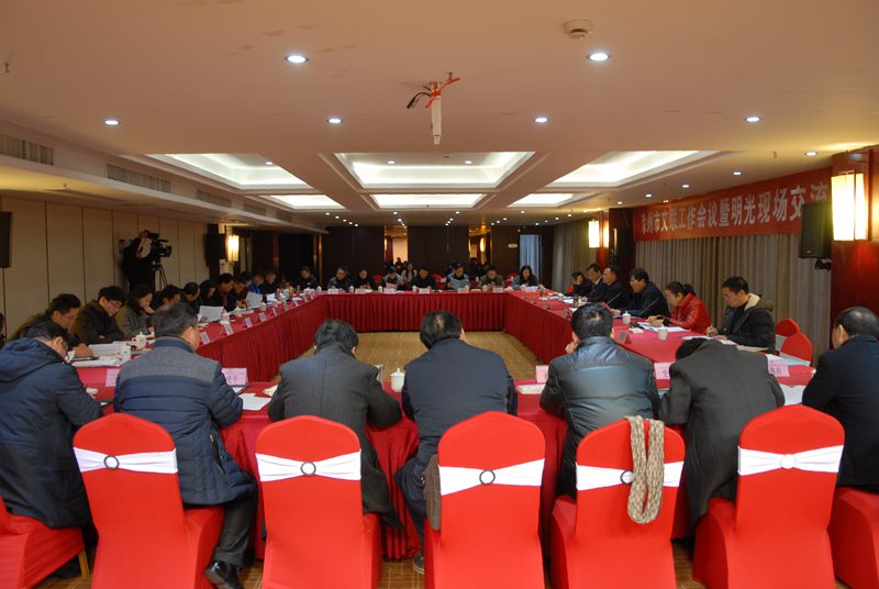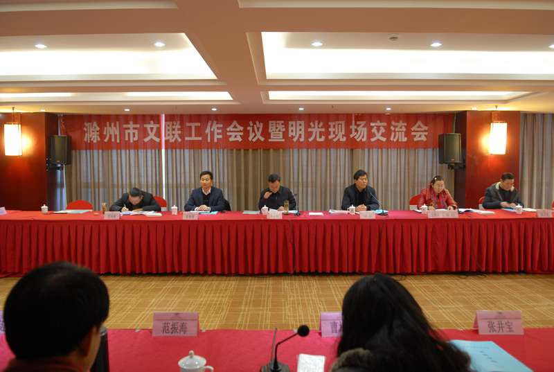 1月15日上午,全市文联工作会议暨现场交流会在明光召开,滁州市委宣传部常务副部长、市文联党组书记、主席周全教出席会议作重要讲话,明光市委副书记刘东出席会议并致辞,滁州市文联党组成员、副主席徐红主持会议,明光市委常委、宣传部长朱智青,滁州市文联党组成员、副主席贾鸿彬,市文联党组成员、组联部长陆卫东,各县(市、区)宣传部分管部长和文联主席,滁州市文艺家协会、书画院、《醉翁亭文学》编辑部负责人及市文联机关全体人员参加了此次会议。