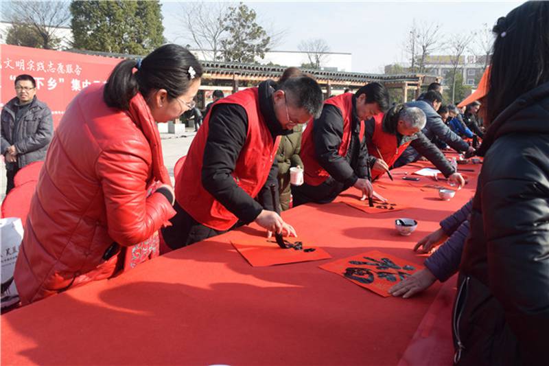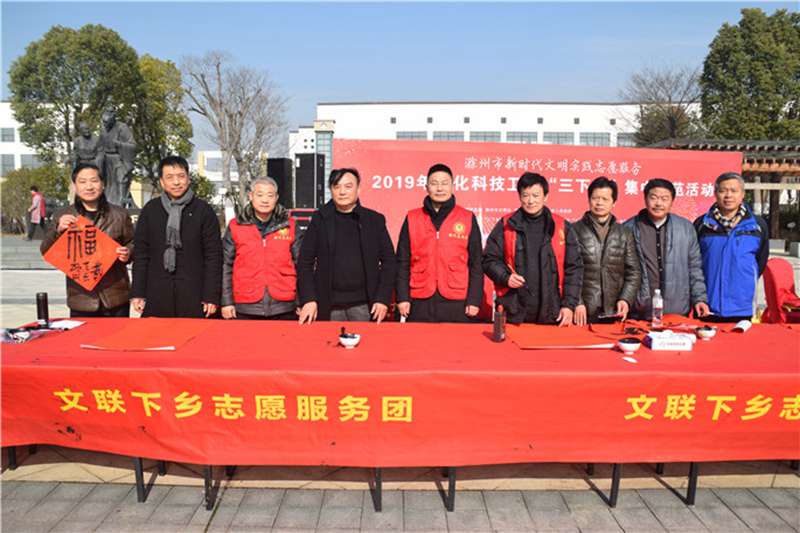 1月18日,滁州市新时代文明实践志愿服务暨2019年文化科技卫生“三下乡”集中示范活动,在天长市秦栏镇举行。根据活动安排,滁州市文联在党组成员、副主席徐红的带领下开展了书法摄影艺术家义务写春联、留影像活动。