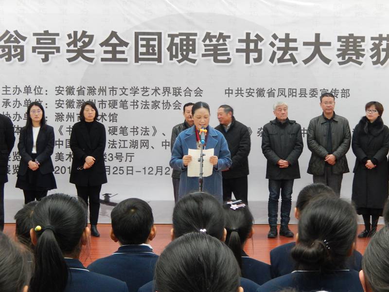12月25日上午,由滁州市文联、中共凤阳县委宣传部主办,市硬笔书法家协会承办的第二届醉翁亭奖全国硬笔书法大赛获奖作品展在滁州美术馆开展。市政协原主席何希勇出席仪式并宣布开幕,市政协副主席陈素云作致辞发言,市人大原副主任张尽忠,市文联党组书记、主席张毅等领导与广大硬笔书法爱好者100多人一起参加开幕式。
