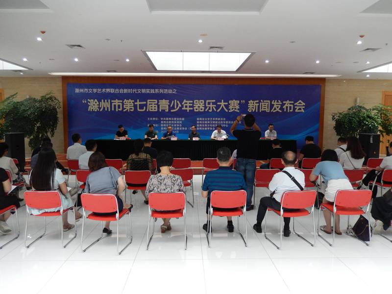 7月13日上午,“滁州市第七届青少年器乐大赛”新闻发布会在滁州美术馆三楼举行,市委宣传部副部长于晓波,市文联党组书记、主席张毅,市文联党组成员、副主席贾鸿彬,市委教体工委委员、市教体局总督学付俊、市文明办副主任李国金等出席了本次发布会。安徽日报、中安在线、安徽经济报、安徽法制报、工商导报、新安晚报、市场星报、滁州日报、滁州电视台等十多家媒体记者参与此次发布会。