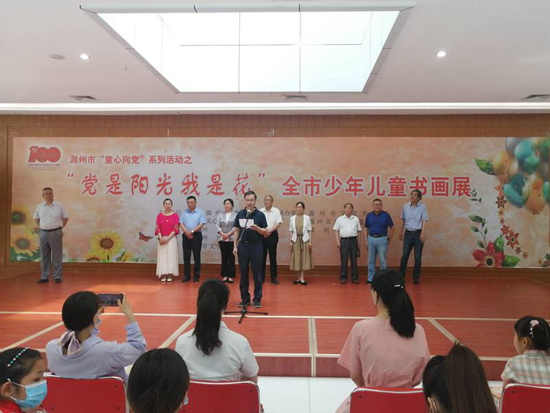 为庆祝中国共产党成立100周年,欢庆六一儿童节,6月1日上午,由中共滁州市委宣传部、市关工委、市教体局、市文明办、市文联共同举办的“党是阳光我是花”全市少年儿童书画展在滁州美术馆开展。