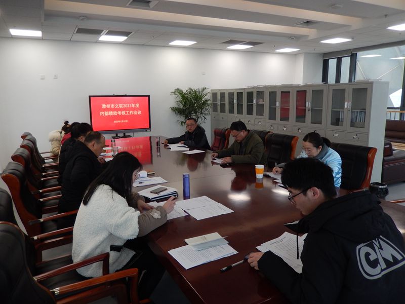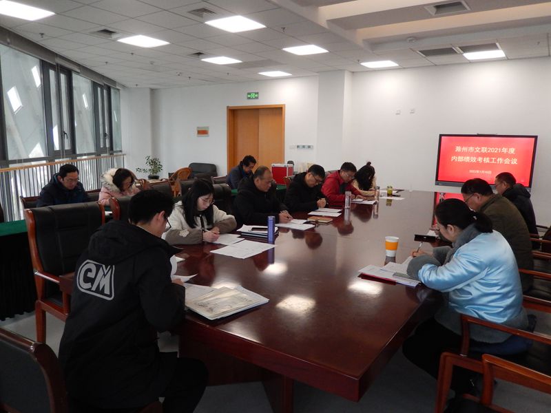 1月10日上午,市文联召开2021年度内部绩效考核会议,党组书记、主席张毅主持会议,党组成员、副主席徐红、贾鸿彬和全体人员参加会议。