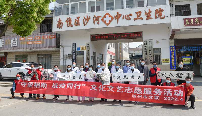 4月19日上午,为向基层抗疫一线的医务工作者致敬,用文艺作品传递战疫力量,市文联、市文艺志愿者协会前往南谯区沙河镇卫生院开展“守望相助 战疫同行”文化文艺志愿服务活动,为抗疫一线的基层医务工作者现场创作并捐献书画作品,市文联党组书记、主席张毅,党组成员、副主席贾鸿彬参加活动。