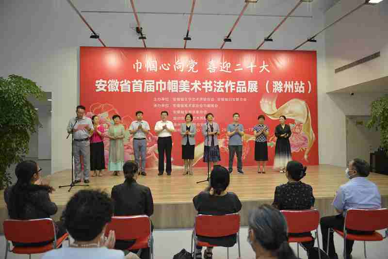6月16日下午,由安徽省文学艺术界联合会、安徽省妇女联合会主办,安徽省美协巾帼画会、安徽省女书法家协会、滁州市文学艺术界联合会、滁州市妇女联合会承办的“巾帼心向党·喜迎二十大”首届安徽省巾帼美术书法作品展(滁州站)在滁州市文艺中心开展。