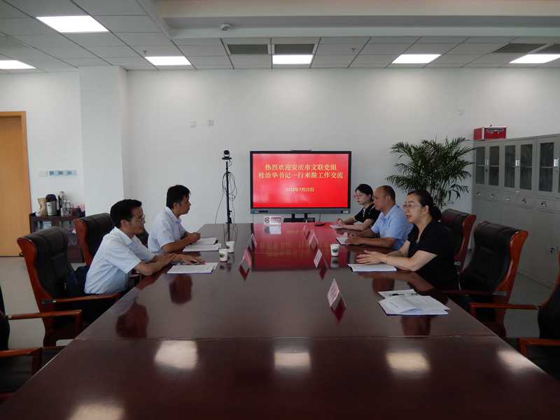为推动安庆和滁州两地文艺工作交流,7月22日上午,安庆市文联党组书记桂治华带队来我会开展学习交流活动,滁州市文联党组成员、副主席徐红热情接待了安庆市文联一行。