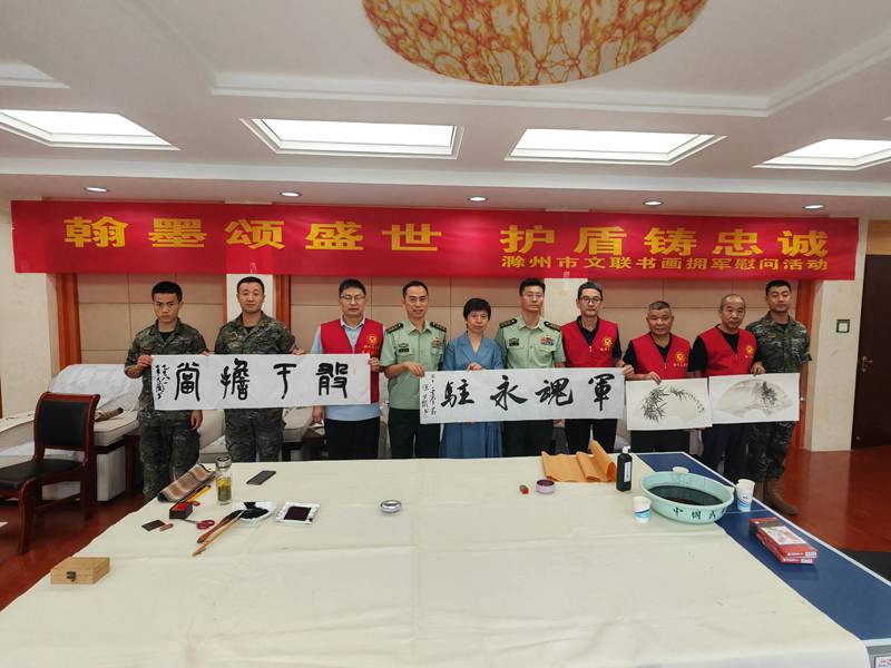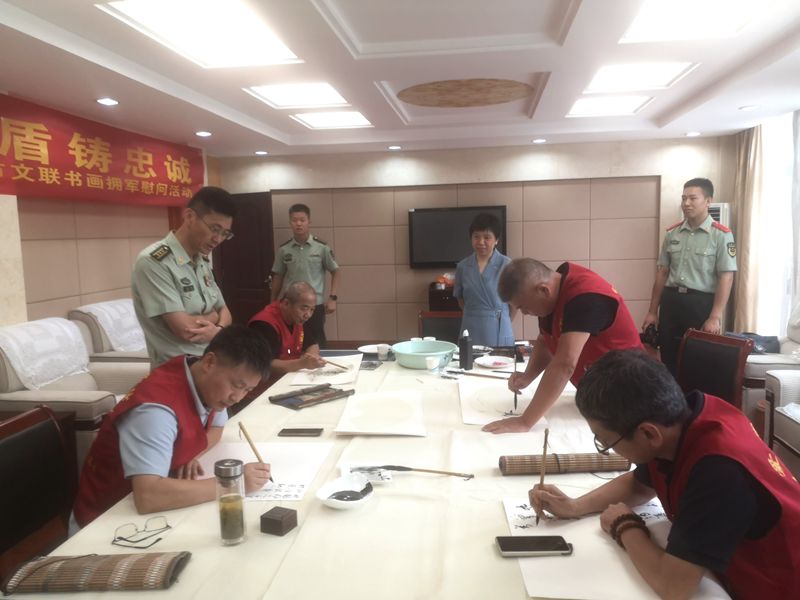 为庆祝中国人民解放军建军98周年,弘扬拥军优属光荣传统,8月1日上午,市文联党组成员、副主席王玉荣带领文艺志愿者前往武警滁州支队,开展“翰墨颂盛世 护盾铸忠诚”书画拥军慰问活动。