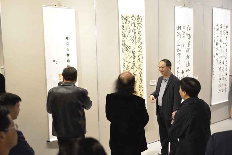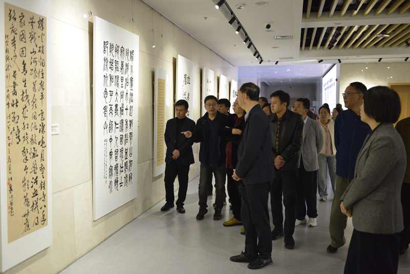 内蒙古自治区文联副主席、内蒙古书法家协会主席、秘书长李力,内蒙古书法家协会副主席包国庆、白玉林、刘伟、梁能伟,安徽省书法家协会秘书长程多林,安徽省书法家协会副主席王涛,中共滁州市委宣传部副部长赵文霞,滁州市文联党组书记、主席张毅,党组成员、副主席王玉荣与皖蒙两地书法家一起参观展览。