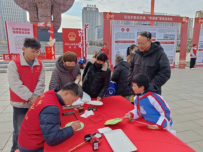 12日4日上午,2025年滁州市“宪法宣传周”宣传活动在农歌会广场启动,市文联党组书记、主席张毅带领书法志愿者参与活动,用艺术形式诠释宪法精神。