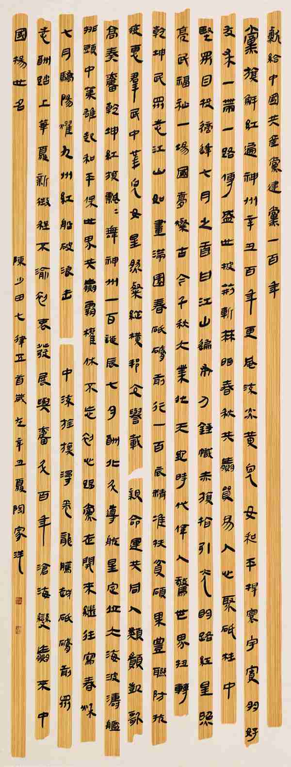 入展作品:(按姓氏笔划排序)王元国、王勇、王雅、王新红、王璐、尹昱、石世文、石瑀、田春林、田益全、冯立章、刘文祥、刘忠成、刘锋、刘登洪、汤化柱、许友华、许庆国、孙运汇、李文清、李玉胜、杨峰、吴学军、余连创、沈成举、宋瑞才、张文、张龙林、张四清、张永林、张良军、张茂功、张银柱、陈玉、陈玉龙、陈正峰、陈汉伯、卓森、周杰、周瑜、郑文兰、单庆会、赵发龙、赵阳、胡宝君、柳学明、钟定宇、夏继德、徐方虎、徐华缤、徐安林、高大国、高山泉、郭成才、陶家洋、黄云、黄进、黄利、曹丰华、曹平、曹俊恩、常道江、梁传宝、程德宁、鲁邦琼、解正胜、蔡干、裴家瑞、熊海南、薛雯、穆森、戴锦好