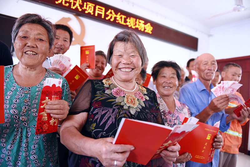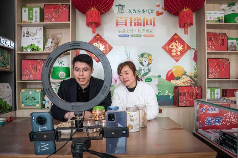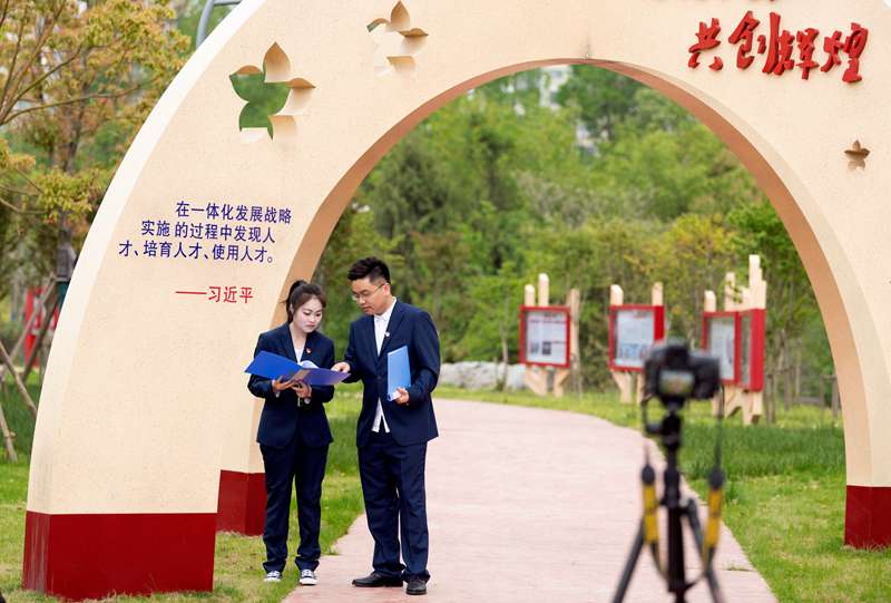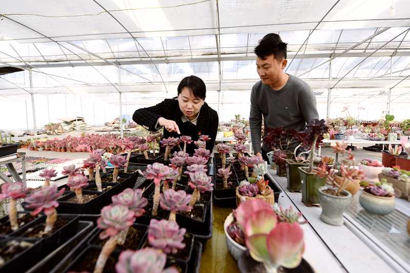 《全国脱贫攻坚先进个人王晓丽(左)在调研多肉植物种植情况》 作者:张丽