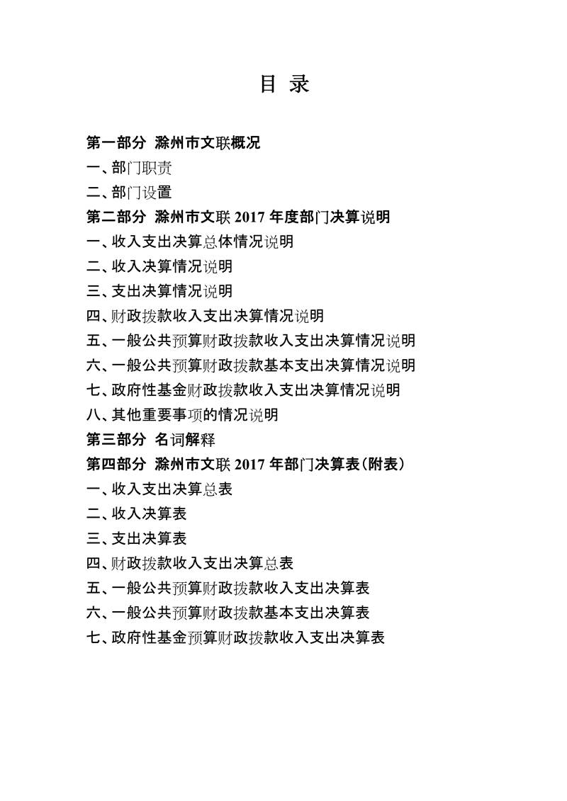 纳入滁州市文联2017年度部门决算编制范围的单位共1个,详细情况见下表: